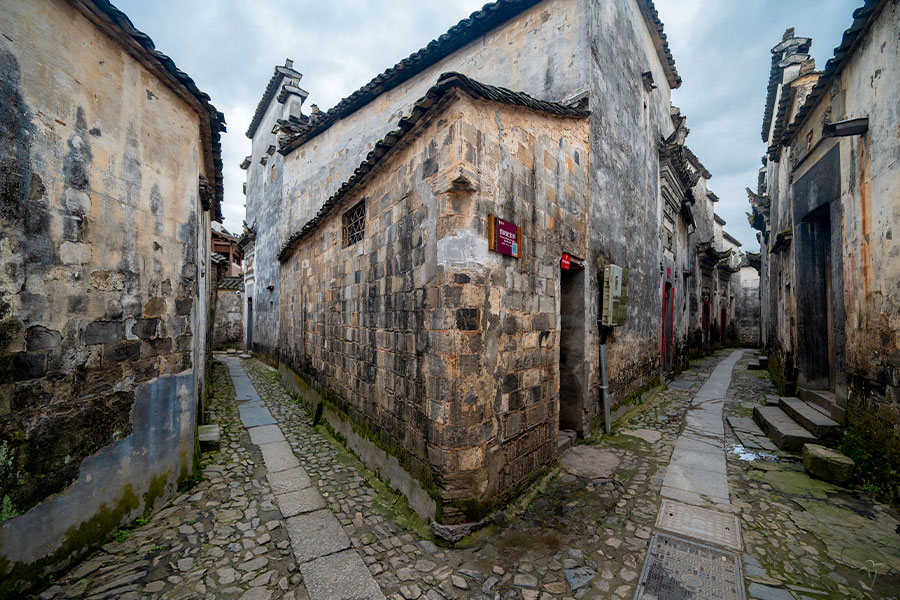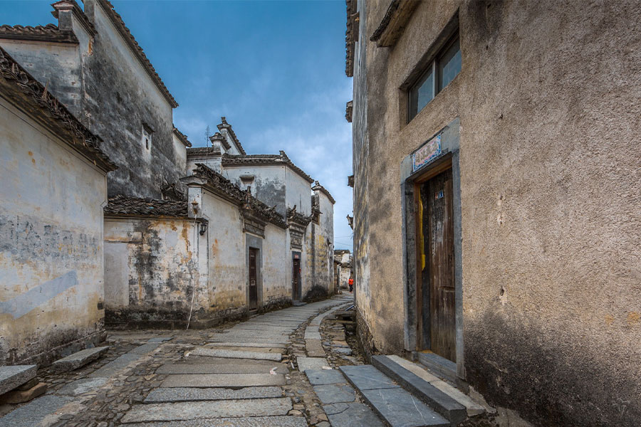 Nanping Ancient Village of Huangshan, located at the foot of Nanping Mountain, 4 kilometers southwest of Yi County, is a millennium-aged, grand scale habitation for ancient Huizhou merchants. To this day, the mysterious Nanping Village still well preserves nearly 300 ancient dwellings built in Ming and Qing dynasties (1368-1911); the criss-cross 72 lanes among high walls constitute a mysterious maze, and 36 ancient round or square wells still produce limpid waters; what is more, on the 300-meter-long axes from the end to the other end of the village is the spectacular architectural complex of 8 quaint ancestral halls.