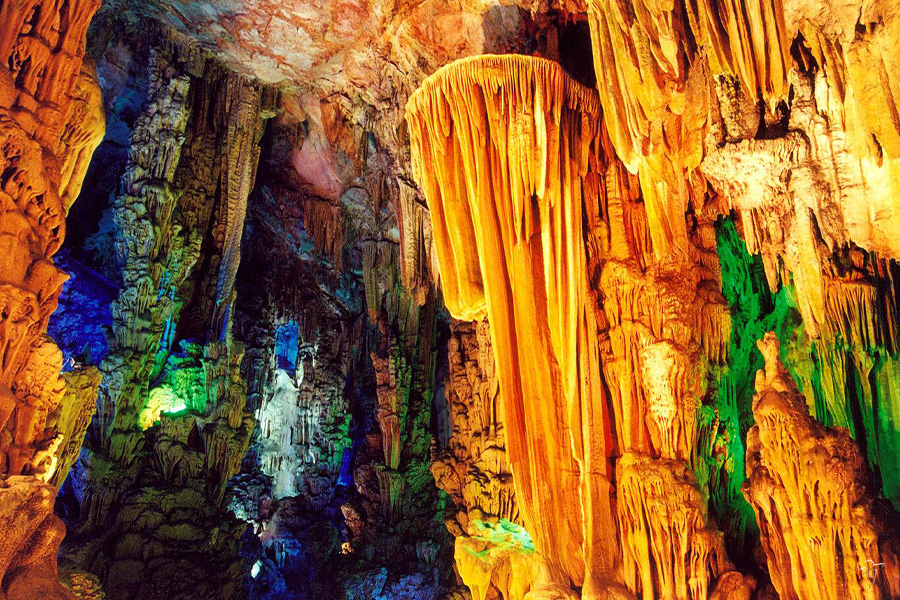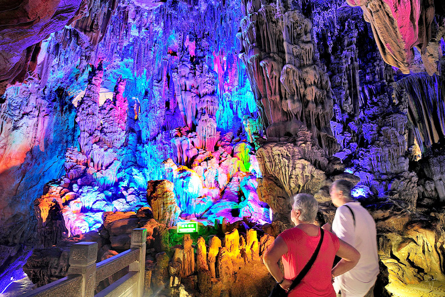 Being a city of wonders that ranks on the top list of destinations for its numerous heaven-like landscapes, Guilin is without any doubts the city where to enjoy different kinds of sceneries among which the enigmatic Reed Flute Cave is one of the most renowned one. Comprising different kinds of natural rock formations, Reed Flute Cave (芦笛岩Lu Di Yan) is the most important and sightworthy cave of Guilin vicinity for its length of 240 meters and its many stalactites, stalagmites and rock formations in weird and wonderful shapes appealing to everyone"s imagination. As a typical Chinese habit for giving names to rock formations, the origins of the cave's name comes from the reed grass growing outside the cave and used by the locals to make flutes and pipes producing a melodious sound. More than just a random cave, the Reed Flute Cave is a Guilin top attraction that visitors should discover.