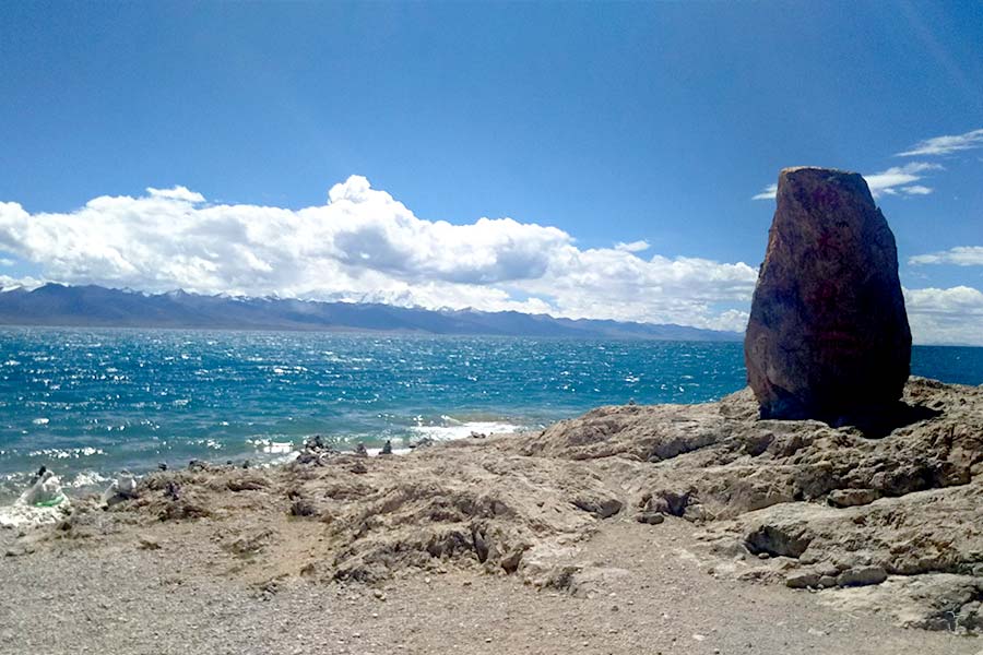 Drive from Lhasa to Namtso Lake. Visit the Namtso Lake. With over 30 kilometers from north to south and over 70 kilometers from east to west, Lake Namtso covers a total area of more than 1,900 square kilometers, being the second largest salt lake in China. At an elevation of 4,718 meters, it is also the highest-altitude salt lake in the world, the furthest depth being more than 33 meters. The water in the lake for the most part arises from rains, melted ice and snow of Nyenchen Tonglha Mountains and the inflow of crooks and streams, hence the lake is very clear and limpid. With the lake surface assuming sky blue, the lake and the sky seem to be one and undivided. When you stroll by the lake, you might feel yourself in a fairy land.