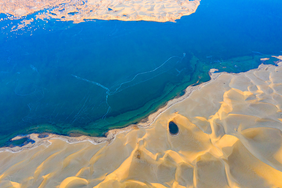 Overlooking from Hongbai Shan, which has a height of 1,413 meters above sea level, you will be shocked by another kind of vastness of the desert. At sight of it, people will feel how small the human is when compared with the earth. Shutterbugs can never miss such a spectacle!