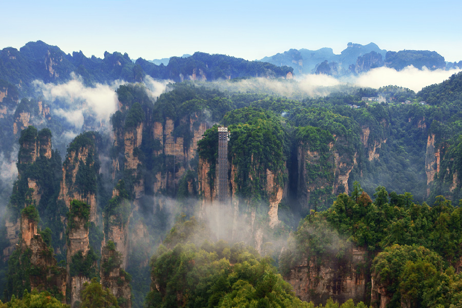 Yuanjiajie Scenic Area is accessible by two ways from foot of mountains: one is walking through Luancuan Slop from Golden Whip Stream to Back Garden of Yuanjiajie; the other is taking the Bailong elevator, the No.1 elevator in the world, by trekking through the Baizhang Valley. When the elevator reaches the mountain top, Fields and Gardens in the Air will come into view. The mountain trail invites you to walk around the area and enjoy vistas. Major highlights in Yuanjiajie Scenic Area includes Bailong Lift, Fields and Gardens in the Air, No.1 Natural Bridge under Heaven, Hanging Waterfall, Mihun Bridge and Tujia Village.
