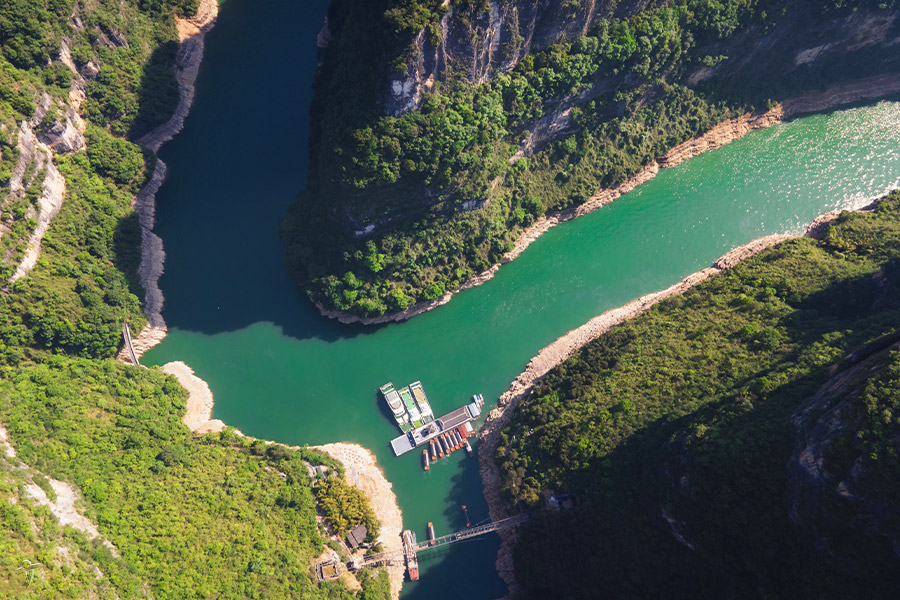 The lesser Three Gorges, situated on a tributary of the Yangtze, are much smaller, narrower and have some dramatic scenery to offer. Situated on a much smaller river as they are only passenger boats can make their way up the narrow gorges and winding river. On both sides impressive stone cliffs are interspersed with surrounding rural scenery and forested areas. It was selected as one of the forty top tourist attractions in China in 1991, jointly by the tourists and the China Tourism Commissioner's votes and evaluation.