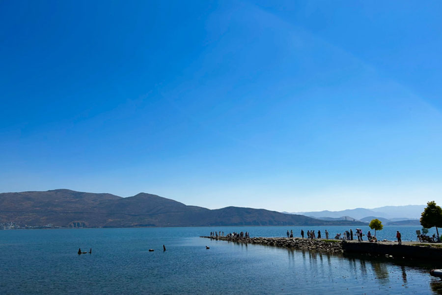 First we will visit Erhai Lake. Erhai Lake is the largest highland lake next to Dianchi and one of the seven biggest fresh water lakes in China. It means, 'sea shaped like an ear', in Chinese. Implying that the lake is ear shaped and as large as a sea, hence it was so named. The lake covers an area of 250 square kilometers and is located about two kilometers east of Dali.