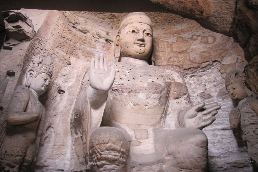 Then we will head to the Yungang Grottoes. Yungang Grottoes, one of the three major cave clusters in China, punctuate the north cliff of Wuzhou Mountain, Datong. The area was excavated along the mountain, extending 1 km (0.62 miles) from east to west, revealing 53 caves and over 51,000 stone statues.