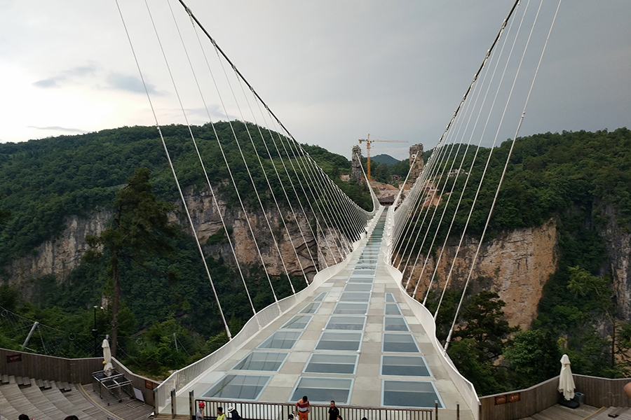 You will also visit the Zhangjiajie Grand Canyon Glass Bridge. Stretching about 430 meters across a canyon at width of 6 meters, with a dizzying height of some 300 meters above the impressive Zhangjiajie scenery, this sky-walk is set to smash records to be the world’s longest and highest glass-bottomed bridge and easily dwarfs America's Grand Canyon Sky-walk.