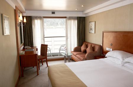 The Century Sun, which took its first voyage in 2010, is one of the newest ships on the Yangtze River. Features The ship boasts the largest cabins, which all have river-viewing balconies. Other facilities include an administration deck, a VIP restaurant, a cigar bar, a five-deck tall hollow lobby, and two elevators. The ship serves both Chinese and Western cuisine. Breakfast and lunch are buffet style, and dinner is a table banquet setting. The ship is perfectly equipped with a sauna room and massage parlor, KTV, a theatre, a gym, a conference room, and a business center, providing great conveniences to passengers. The ship boasts two diamond suites, 14 executive cabins, four deluxe suite, and 112 deluxe standard cabins. The two diamond suites are the largest among all of the Yangtze cruise ships and provide room occupants with a river-viewing balcony.