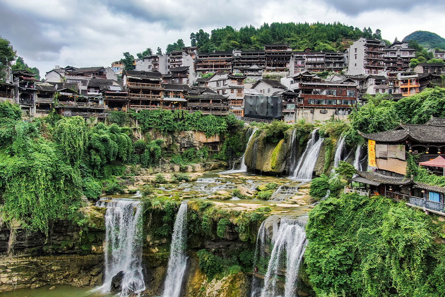Check out your hotel in the morning, and you will be driven to have a full day tour of Furong Ancient Town. The town has a history of more than 2,000 years. It is called the "ancient town hanging on the waterfall" because of the magnificent waterfall passing through the town. Surrounded by green mountains and clear water, the town is full of winding alleys, the Tujia stilted wooden houses, and streets paved with flagstones, which reflect simple folk customs of the local Tujia people.
