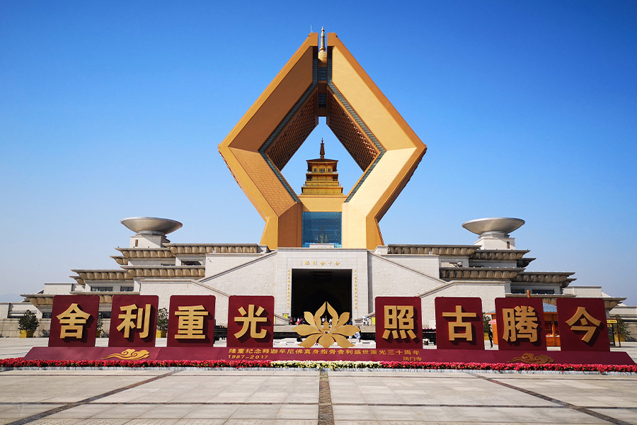 Drive to Famen Temple, which is situated in Famen Town. With a history dating back 1,700 years, the temple was built during the Eastern Han Dynasty (25-220). In addition to its long and rich history, the site has also become a place of pilgrimage for millions of travelers and Buddhists alike as it houses one of Gautama Buddha's finger bones.