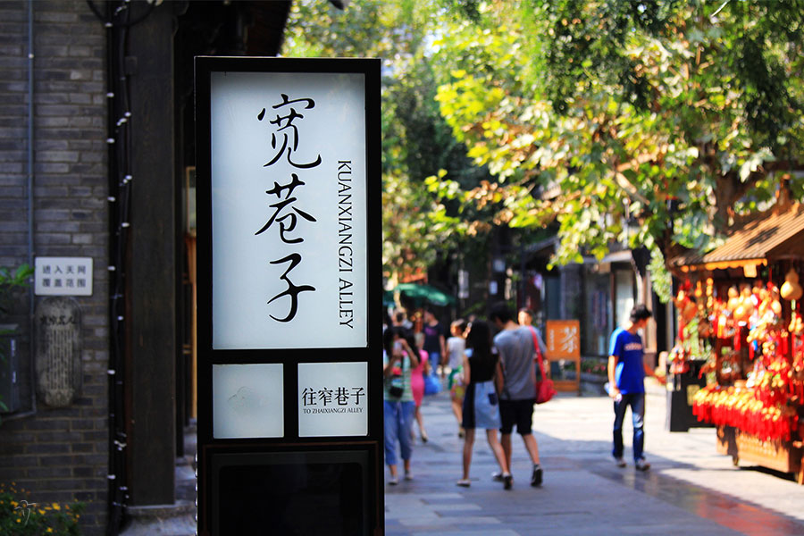 Full day tour seeing Jinli Street and Kuan Alley and Zhai Alley of Chengdu .