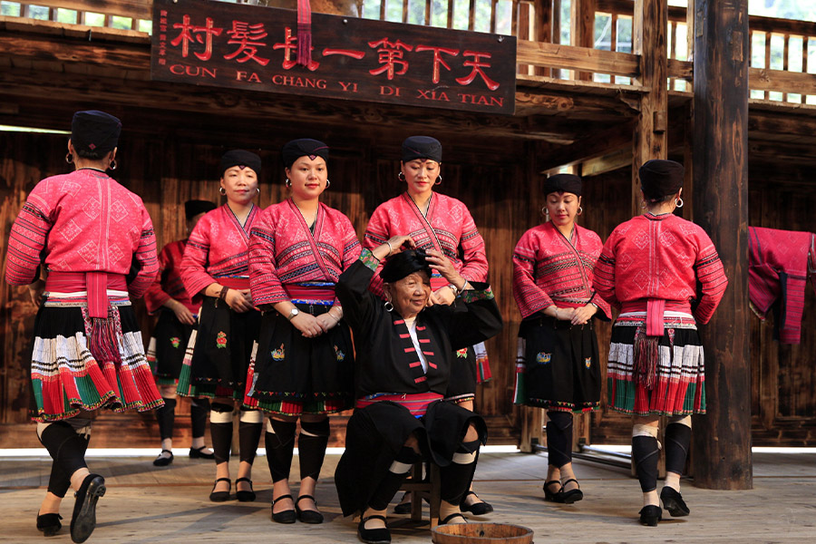 Then we walk towards Yao and Zhuang Ethnic Village. You will experience the village of Red Yao people's community, which is surrounded by beautiful forests.