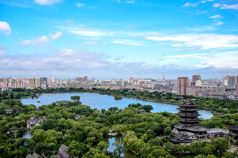 Then we continue the tour to visit Daming Lake. Located in the center of Jinan, Daming Lake Park is regarded as one of the three must-see tourist spots in Jinan together with the Baotu Spring Park and Thousand-Buddha Mountain. Formerly known as "Lotus Seed Lake" and "West Lake", the lake got its current name in the Jin Dynasty.