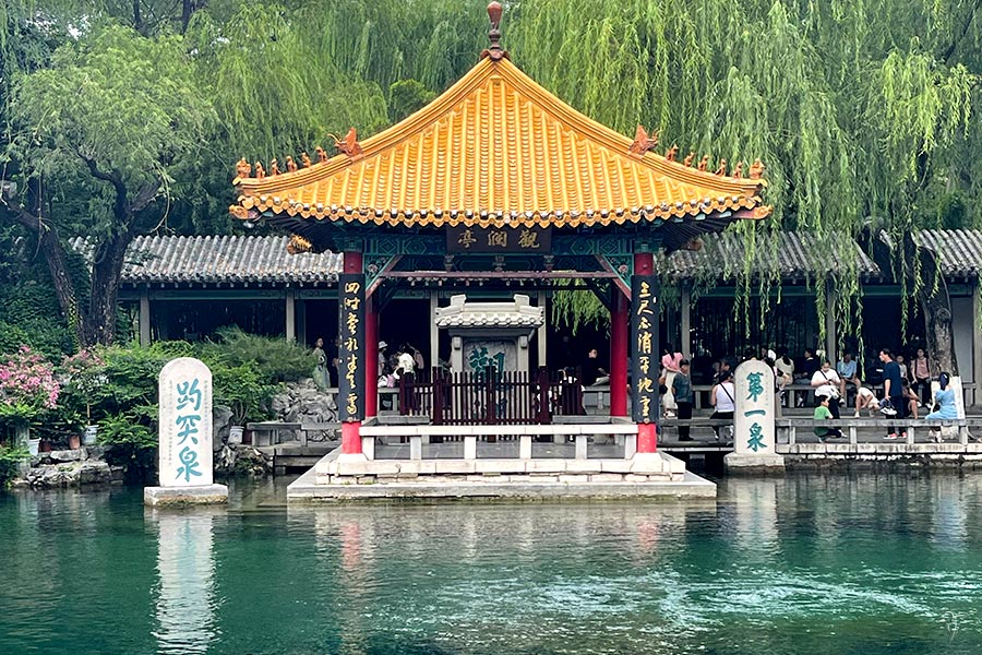 This morning, we will first visit the Baotu Springs. Baotu Spring, also known as the "First Spring under Heaven", is one of the most popular of Ji'nan's springs with a long history of more than 2,600 years. Together with its environs, it has been turned into a park of the same name, located to the southwest of the old city district of Ji'nan.