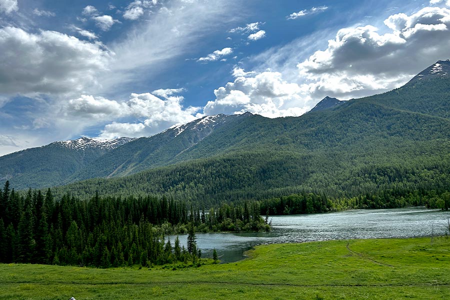 Shoot the beautiful sceneries of the Black Lake in the morning. The Black Lake is also named 1000 Lakes with big and small lakes in good order. Visit the deer farms and overlook Kanas. Then ride to the famous Kanas Scenic Spot to visit the Moon Bay, Fairy Bay and Dragon Bay. To the north of Kanas, there is the snowy Kuytun Mountain and towering Friendship Mountain.