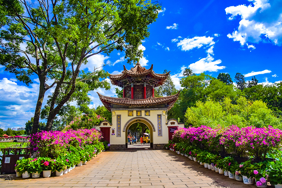 Then we will visit Kunming Flowers and Birds Market, the city's biggest, most attractive shopping market where spring reigns all year. Since 1983, the Flowers and Birds Market has gradually been built into a comprehensive public spot for leisure, shopping, and trading. Strolling on the market street, you will see shops and stalls of all sorts, especially those featuring flowers, birds, and fish.