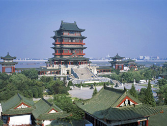 First we will visit to Tengwang Pavilion, rising high above the bank of the Ganjiang River, the Tengwang Tower was first built in 659AD by the then prefectural governor of Hongzhou (present day Nanchang) Li Yuanming, or Tengwang. Poems written by Tang dynasty (618-907AD) poet Wang Bo have made the tower famous. The tower was rebuilt and repaired 28 times and in 1989 it was renovated in the Song style. This granite structure is 9 stories high and houses numerous gift shops, a tea house, exhibition halls and a natural history museum.