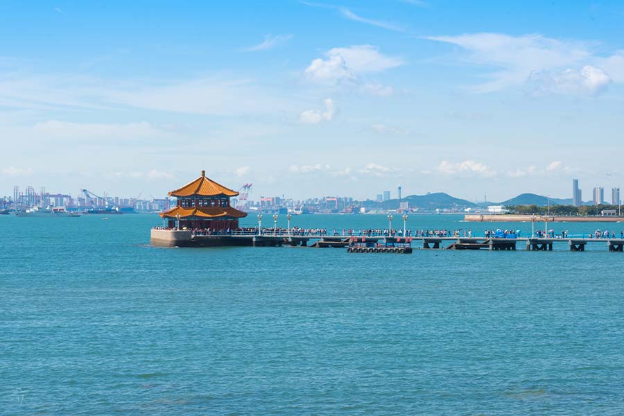 You will take a walk along the Zhan Bridge, a landmark of Qingdao, welcomes travelers at their first stop in this beautiful coastal city.At the south end of the bridge is a Chinese style octagon pavilion standing in contrast to European buildings in the background. Qingdao Bay is crescent shaped; like an arrow, the bridge shoots into the broad sea.