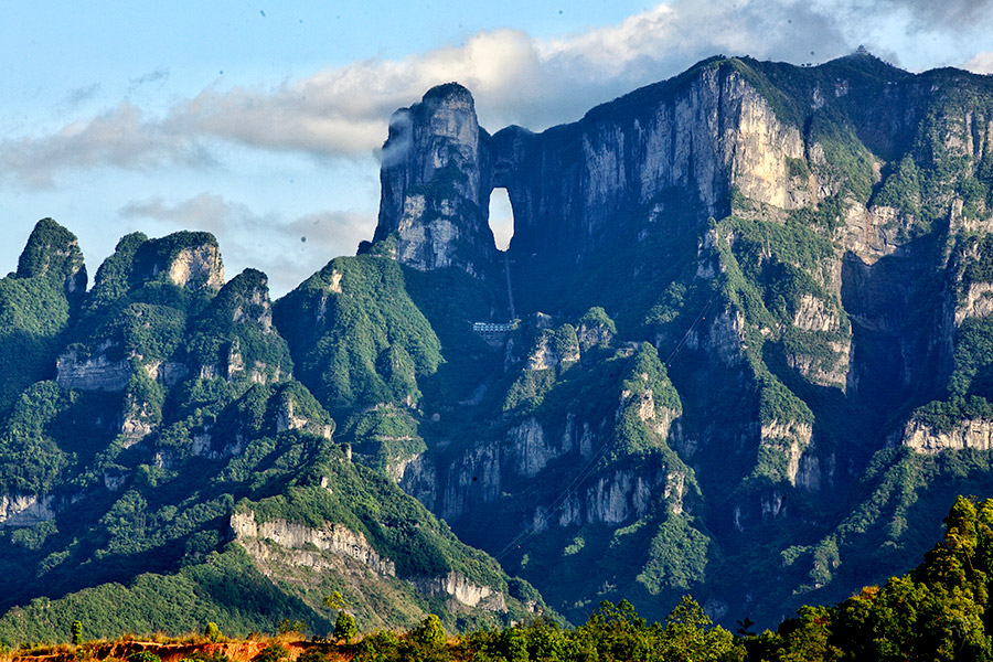 Further explore Zhangjiajie by visiting the Tianmen Mountains. Authorized as a national forest park in 1992, Tianmen Mountains is also known as Heaven Gate Mountains due to the unique natural miracle Tianmen Cave on the mountain, many Chinese believe that the Tianmen Mountain is the "Closest Earth Landmark to Heaven".
