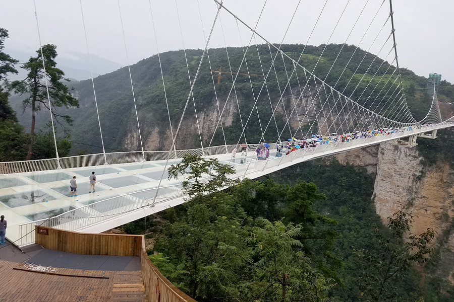 Continue to visit Tianmen Glass Plank Road. With the highest altitude of some 1430 meters, the glass walkway is 60 meters long and 1.6 meters wide. The excitement on Tianmen Glass Plank Road almost can be comparable to the America’s Grand Canyon Skywalk, thus it is reputed as the “Skywalk of the East”.