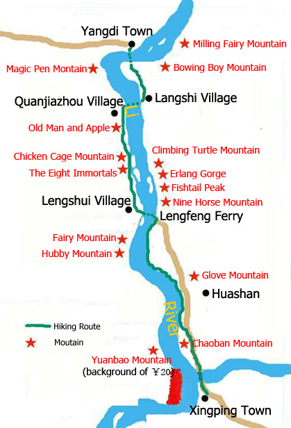 We selected the most classic and popular section of Li River as the hiking route, which is from Yangdi Town to Xingping Town. And we had three times of boat transferring respectively at Yangdi, Langshi Village and Lengshui Village to another bank of the river for continuing our hiking trip. The whole travel took about six hours and we visited the Lengshui Hotel at the Lengshui Village and Xingping Ancient Town at Xingping.