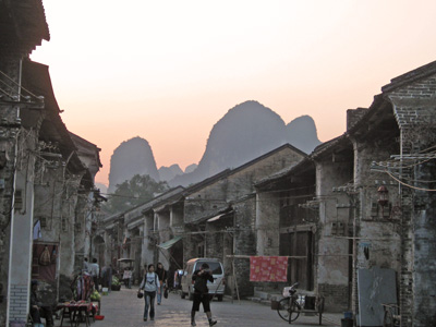 We continued our hiking from Lengshui Village to Xingping from 16:00. Yuanbao Mountain (background of Chinese RMB value 20 yuan, a famous site for Chinese RMB Bank Notes Tours. Then we visited Xingping Ancient Town for half an hour from 17:30. After taking about 40 minutes' bus trip, we finally got to Yangshuo.