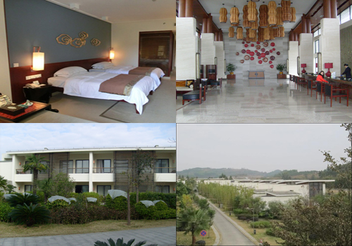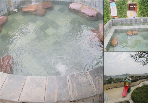Guxiang Holiday Village of Hot Spring is situated in the Hot Spring Holiday Resort which lies seven kilometers away from the east suburb of Xiangzhou County, which is a National AAAA Scenic Area and which wins the acclaim as the Best Hot Spring of Middle and South China. In the Guxiang Holiday Village of Hot Spring, we appreciated the refreshing air, verdant mountains, simple but exquisite villas. What a wonderful world! More thrillingly, many of our colleagues took a bath in the hot spring. More than ten hot springs are scattered around; seen from afar, the holiday village as a whole is an enormously huge steamer. Small wonder that Xiangzhou Hot Spring is widely known as Fairyland of Coloured Pond. Water in the hot spring is of high quality, limpid and rich in such trace elements as sodium, potassium, calcium, magnesium, iron, zinc and so forth. In the meanwhile, it can benefit your health. According to those who had a shower in the hot spring, you would feel warm and hot all over, face rosy and ruddy, blood coursing in the veins.
