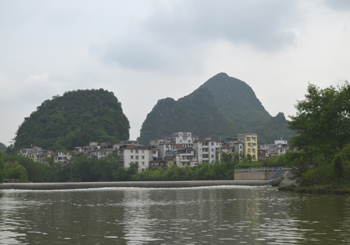 For it is a new itinerary, some introduction of Peach Blossom River firstly made seems necessary. Peach Blossom River (formally named Yang River), is the main tributary of the famous Li River. We were told by the tour guide that due to fragrance of peach blossom waft in spring on river banks, hence the name Peach Blossom River (Taohua River in Chinese). We did not see those delicate and charming peach blossoms since it was not the right time, however, we had helpful and considerate tour guide who smiled like flower, led us to the cabin.