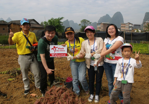 Last Saturday I had the opportunity to participate in our travel agency’s annual outing to Silver Cave/ Yinzi Cave at Lipu County, Guilin. It is a great place with extraordinary sightseeings and I had a happy and special weekend. The theme of the trip was reaping sweet potatoes on the local farmland after which we had nice lunch, baked sweet potatoes, and took photos around the Silver Cave.