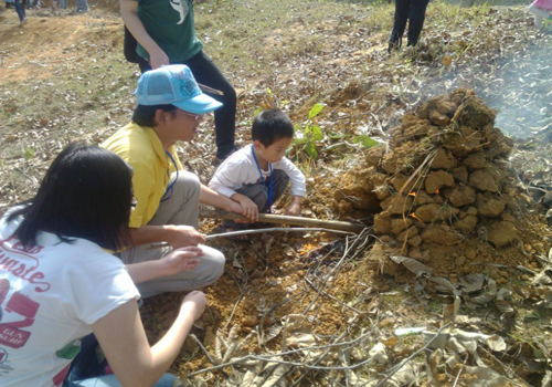 Baking sweet potatoes required both skill and labor because we needed to bake in an extremely primitive way - make a kiln and bake them with firewood. The location was in the chestnut woods, so it was like hiking and adventure when we were collecting firewoods and digging kilns. With about 30 minutes’ work, we made a great success and had a grand feast of baked sweet potatoes and chestnuts.