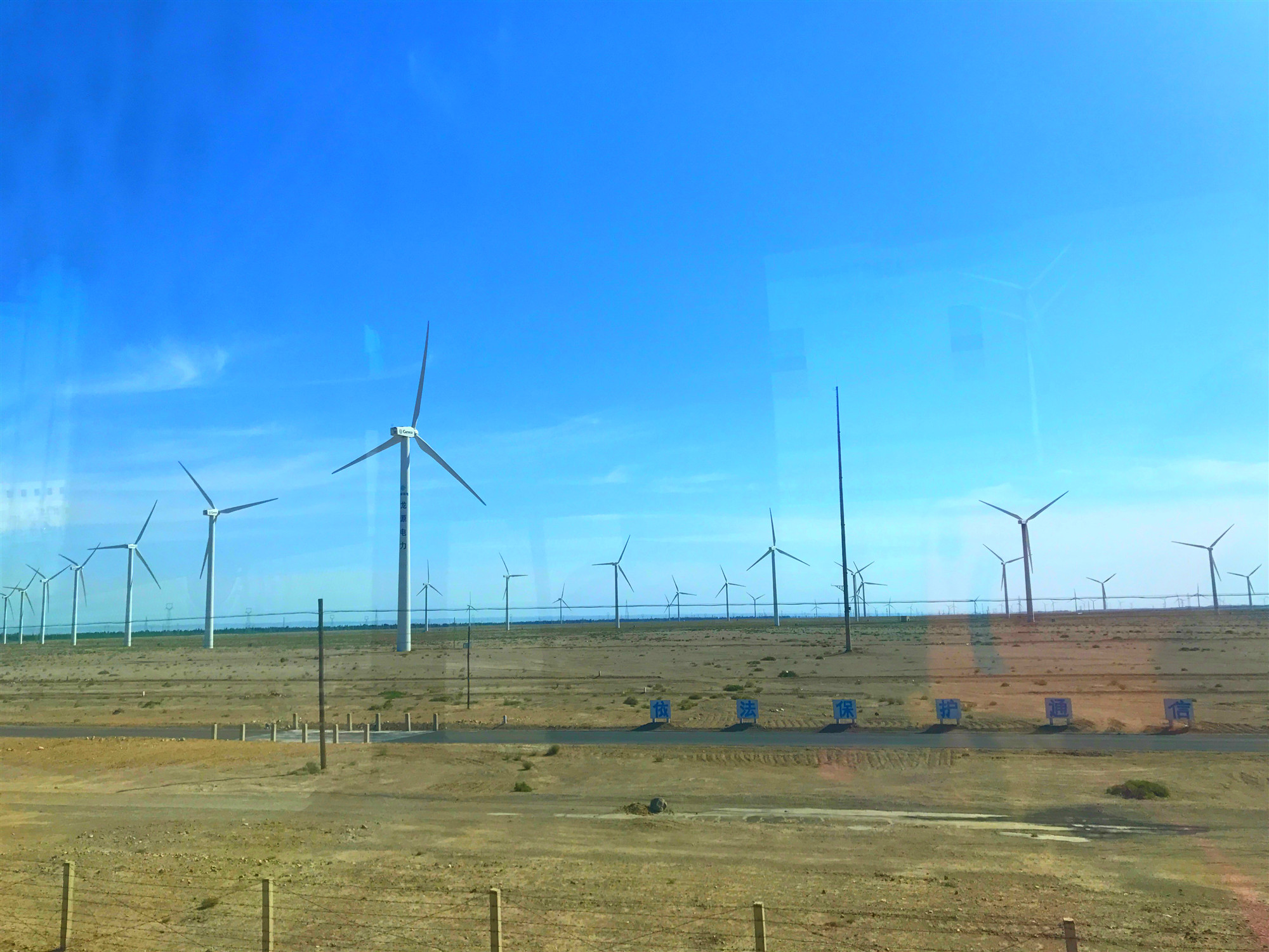 After such a memorable tour in Jiayuguan, we head for next great destination-Dunhuang. Although the fast train is available between Jiayuguan and Dunhuang, it is more convenient for us to drive by road with our coach and driver. Driving takes about 4 hours, on the long drive, you can find the geographic change, Jiayuguan is like a oasis in Gobi desert along Hexi corridor and Qilian mountain, but Dunhuang is another oasis in Hexi corridor. Between the both places, it is vast Gobi, Chinese government takes good use of the local natural condition, the heavy wind, we built lots of wind turbines to convert this energy to electric power.