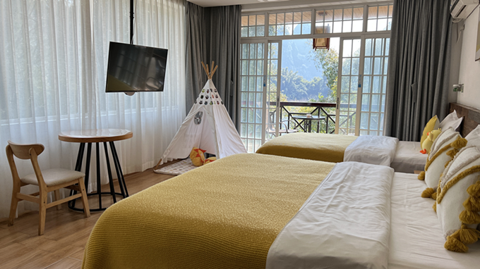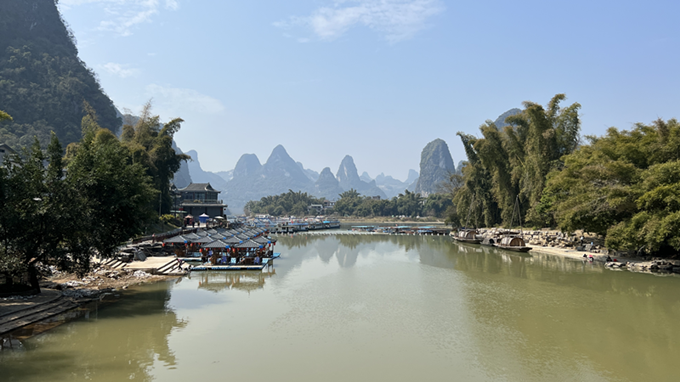Along the river, there are 3-4 viewing decks where you can get the best view of the river. And we can find the Chao ban shan wharf where the bamboo rafting cruise starts.
