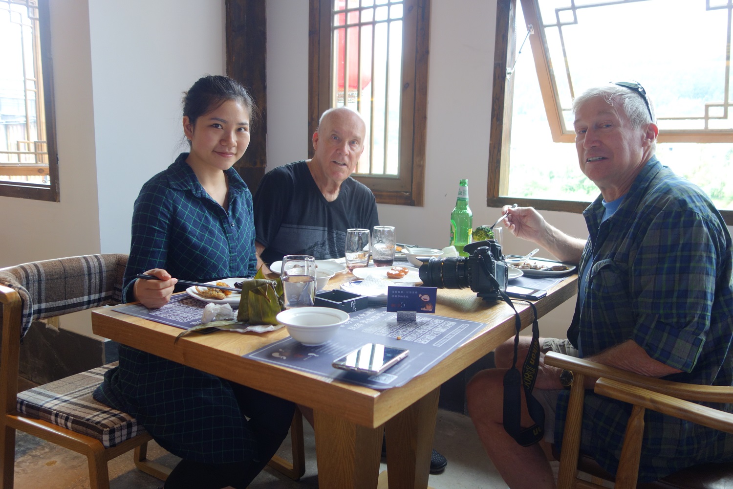 We then returned to Zhangjizjie and found Jay in our hotel room. Jay had decided to get caught up on some sleep and thus, saved his camera from the damaging moisture that one couldn't avoid if outside. Off to lunch went the 3 of us. Melody took us to a fantastic restaurant. The restaurant was managed (owned ?) by friends of hers and indeed, she seemed to know many of the restaurant staff. She introduced us to many of them. The 'house special' was ....'SALAMANDER'. Yes, we tried it and yes, we enjoyed it. The restaurant only recently opened and it was truly exquisite. Seriously! The ample staff were all very friendly and everything was very tastefully done. Following a very satisfying meal and dining experience the 3 of walked around a bit and then back to the hotel.