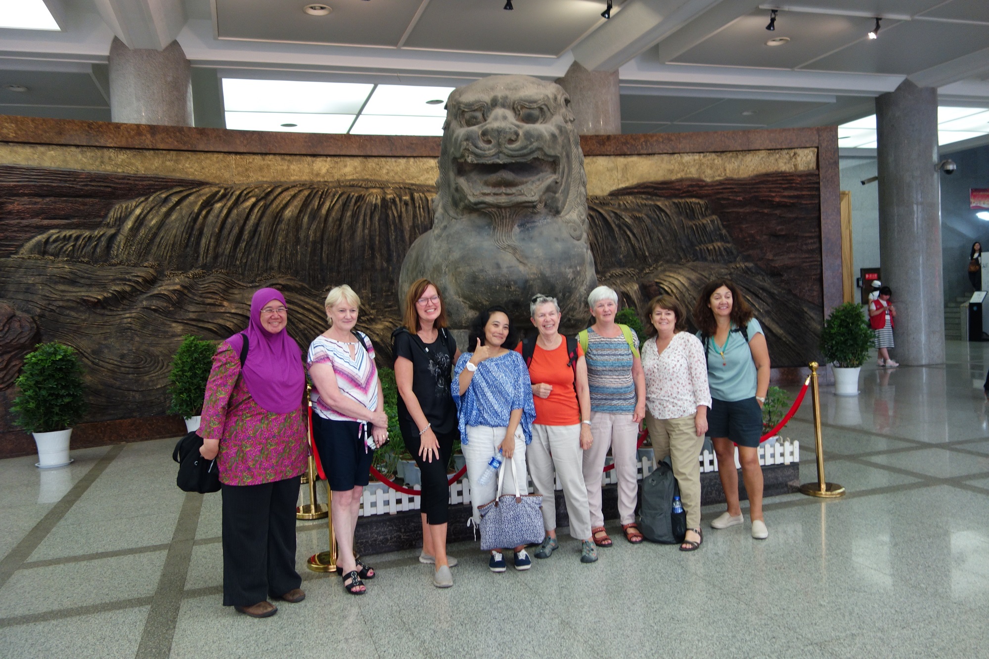 It is now 2 PM and we are again in our van heading back to Xian. Revisiting the terra cotta warriors was yet another amazing experience. These warriors were built under orders of Qin Shi Huang, the founder of the Qin dynasty who ruled a unified China as its first emperor from 221-207 B.C. Think about that! 200 years before the birth of Christ. I had previously visited this site in 1996, some 21 years ago. There have been so many changes to the area as best I can recall. In 1996 we arrived by bus and walked a very short distance to the site. Today we walked city blocks and city blocks and the changes in the area are quite substantial. Today there are shops and restaurants everywhere. The warriors, their horses and carriages are now found in 3 buildings. In 1996 photos of the warriors were not allowed. Today, everyone has a camera or a phone and is taking pictures. We had lunch at a restaurant on the grounds. There we again saw the women from our hotel who are traveling together. A Norwegian couple joined us. Since I am half Norwegian I engaged them in conversation about Norway, the fjords, and lutefisk. Thankfully we didn't have lutefisk for lunch today.