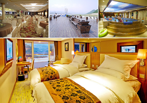 After a short fly from Guilin to Chongqing for some 1 hour and 10 minutes, I transferred to Haikehui restaurant to have a dinner with our group, then departed together for President No.8. President No.8, our Yangtze Cruise ship this time is a 5-star ship and relatively new started its voyage only in April last year. It is also one of the largest on Yangtze River and has about 190 crews to serve about 500 guests. This new ship is equipped with kinds of entertainment facilities, reading room, internet bar, KTV, Mahjong room, gym room, cinema, indoor swimming room, beauty salon, Oscar multi-function hall, massage… and clinic, to make your trip no boring and anxious. Each room has an independent balcony, offering great view of Yangtze River, and more important, the ship also made great improvements on safety and traveling comfort. More info about President No.8