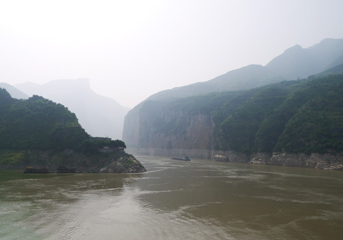 After departing Fengjie, the cruise ship continued its voyage to pass the first gorge and shortest gorge Qutang Gorge (8 km long), then the visual feast started. The remaining times on the ship, we could enjoy beautiful sceneries on both banks at nay time. About 1.5 hours later, the ship passed the second gorge Wu Gorge (46 km long).