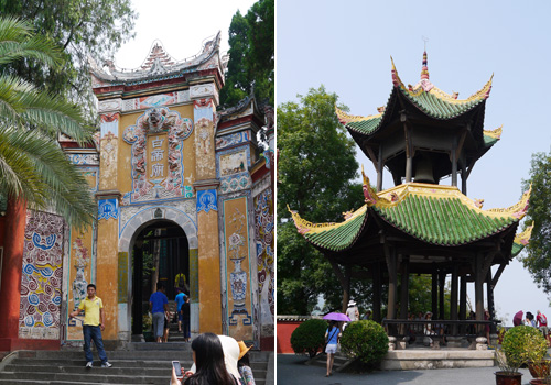 This day’s on land sightseeing is in the afternoon for Shibaozhai Pagoda. But if you want to see more attractions, you can also pay RMB280 for sightseeing to Fengdu Ghost City in the morning. Shibaozhai, literally Stone Treasure Fortress, is renowned for its unique shape and many fancy legends. It is an architecture wonder existing as the largest column and tie wooden construction with most storeys in China, and listed in the Eight Strange Structures of the World. To visit Shibaozhai Pagoda, we needed to go through a long suspension bridge first, and in the attraction, you can also see inscriptions and cultural relics except the beautiful architecture of the pagoda.