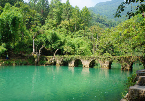 Libo is a county in Guizhou mainly inhabited by ethnic groups of Buyi, Shui, Miao and Yao. Landscape Libo is a mirror of that of Guizhou. In July, Libo’s best attraction is the big and small Qikong (seven holes) Scenic Area. The big Qikong is magnificent with old-growth forest, canyons, underground rivers and lakes; the small Qikong is another lingering charm with pool, waterfalls, a forest overwater and a jungle surrounded Yuanyang Lake.
