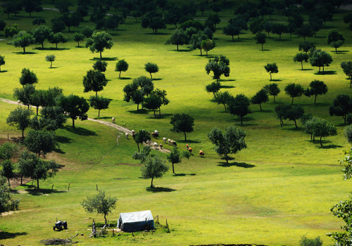 Nalat Grassland is hailed as the essence of the grasslands in northern Xinjiang. Since ancient times, it was a famous pasture with flat valley, steep peaks and lush forest. Enter Nalat is enter a fairyland with luxuriant grasses, a mass of flowers, densely covered springs, and running waters.