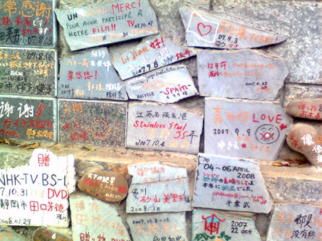 We also found an interesting and characteristic hotel called Laozhaishan Hotel, which was operated by a kind Japanese old citizen. It is special because there is a slate for every guest here to write their thought for memory. And the host will stick the stale on the wall and keep it for them forever. There are many stalls selling small things, just like the West Street in Yangshuo Town.