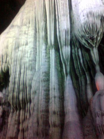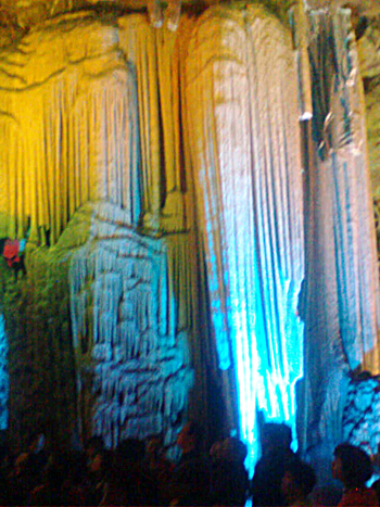 The caves there are of classical Karst Landform and the spot is comprised of 12 mountains. Crystal and white stalactites growing in different geological ages meet here, like the silver-shining and diamond-like Milk Way poring from the sky, so the cave was called the Silver Cave. The most famous three sights of Yinzi Yan are: Waterfall from the Snow Mountain (Xue Shan Fei Pu), Musical Stone Screen (Yin Yue Shi Ping) and Jade Pool Bar (Yao Chi Xian Jing); the three treasures of the cave are: Chanting Buddha (Fo Zu Song Jing), Ardisia Maculosa (Hun Yuan Zhen Zhu San) and Single Towering Column. Yinzi Yan is praised as the "Cave Marvel in the World".