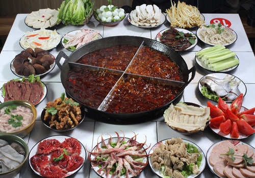 Daliang Mountains of Sichuan, germinates the symbolic spice in Southwest China, wild pepper, which produces a prickly taste. Dalou Mountains of Chongqing, Tujia people plant the best pod pepper. When these two materials meet in Chongqing, here comes the famous Chongqing hot pot condiment. To make the condiment, kinds of peppers are stir-fried and stewed with beef tallow, bean paste, fermented soya beans and bruised ginger. Apart from aroma condiment, the mouthwatering flavor of Chongqing hot pot attributes to its unique hot food, special processed pig trachea and cattle stomach, duck intestines, gizzard, corydoras and any food materials in common families. Hotpot is the symbol of Chongqing, and develops uniquely in different places, Beijing instant-boiled sliced mutton hot pot, Yunnan mushroom hot pot, Chaoshan beef hot pot, and the like.