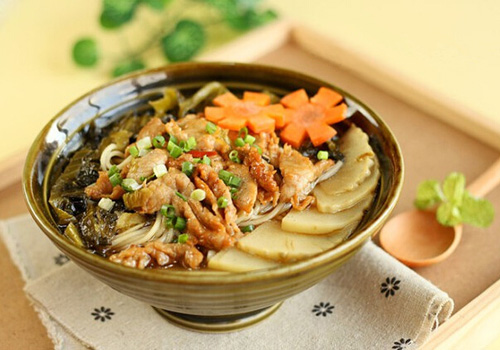 The capital moving from Kaifeng to Hangzhou in Song Dynasty in 1127 A.D. Brought about some similar dishes in these two cities. West Lake fish in sweet and sour sauce is now a famous dish in Hangzhou cooked with grass carp, while the same dish is cooked slight differently in Kaifeng with carp. Kaifeng’s soup buns has been reformed to be fresher in the taste, while Hangzhou still make steamed buns in ancient Kaifeng’ technology. Yet Hangzhou has its indigenous delicacy, Noodles with preserved vegetable. Seasonal Bamboo shoots and potherb mustard are the main ingredients.