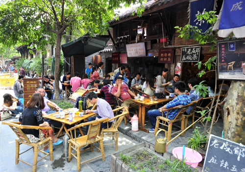 It is said that Chengdu is one of the few cities not changed in the history, even its name and townsite are still the same as it were thousands of years ago. However, Chengdu is with no exception as other cities maintain few old architecture but find Kuan Alley, and its adjoining Zhai Alley and Jing Alley, which preserves unadorned old dwellings though luxury residences were abandoned. Located in the central area, Kuan Alley is a collection of teahouses, inns and restaurants of the most Chengdu style with strong smack of everyday life. It shows the city’s most common trivial but happy life since the ancient times to this day. For local Chengdu, Kuan Alley is an icon, they enjoy the kind slow life style, the composture and leisure, which are clearly reflected in their afternoon tea there in a blue-and-white tea cup.