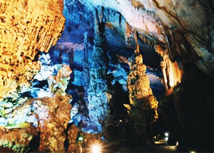 Our first destination on day one was the Reed Flute Cave Scenic Spot, which is the most renowned cave with fantastic scenery in Guilin. On the way to it, we were deeply attracted by the nice limestone Karst mountains and beautiful countryside sights. We could even smell the flavor of fruit from the local farmer's orchards. Undoubtedly, it's a relaxing experience for those who always work in the office far away from the nature. After arriving there, we could not wait to explore this 240-metre-deep cave with a total tour course of around 500 meters! We entered it and passed through the sinuous steps. So what appeared in front of us? It's a huge natural art palace with delicate treasures! We were greatly surprised by the different-shaped Karst stalactites, stalagmites, sheets and flowers lit up by colorful lights; and it is interesting that each of them has its own name such as Diamond Hill (Zuan Shi Shan), Flying Waterfall on the Gorge (Gao Xia Fei Pu), Primeval Forest(Yuan Shi Sen Lin). All of them are so amazing that you would never spare your compliment on it.