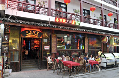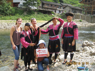 We reached Yangshuo at 2 p.m. and rambled along the renowned West Street, which is described as "Global Village" where thousands of people from all over the world visit everyday. In West Street where is full of Chinese culture, there are all kinds of shops, selling traditional Chinese things, e.g. toys, artwork, T-shirt, chirpaur, minority dress, bags, tea, snacks, etc; of course, if you would like to find a place to drink something or dine, just don't worry about it, as there are so many exquisite-decoration cafes and restaurants in and near the street, providing both Chinese and Western drinks and food. As for buy something in West Street, just feel easy to talk to the shop-keepers, because most of them can speak English more or less.