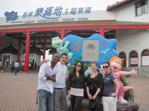 Arriving at the front gate we had to face that apparently a lot of Chinese people had had the same idea and arrived with group busses. It came out that apparently we were the only Non-Chinese people in the park, or at least we did not meet any other. As being students the entrance fee was 70RMB each. We entered the park and were not only surprised by the cleanliness but also by the fact that the attractions were as good as new. The surrounding landscape was very green and beautiful. I loved the many lakes most. The whole park is divided into five areas: Wild West,