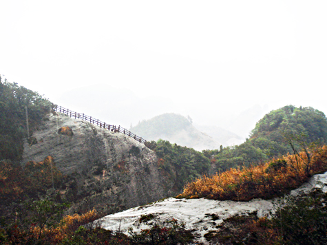 In China, climbing high mountains around the New Year period is a tradition and the climbers usually climb the mountain with good wishes for the coming new year. To welcome the 2010 tiger year (in lunar calendar), we climbed the Bajiaozhai Mountain of Ziyuan County. (Plus: Bajiaozhai Mountain is also called Yuntai Mountain with an altitude of 818 meters. Bajiao in Chinese means eight squares and there are indeed eight squares in the mountain. Danxia Landform distributed widely in the area and more than 30 landscapes were then formed, such as Xianglong Yan, Longtou Xiang, Longji Tianti and Yougu Zhandao.)