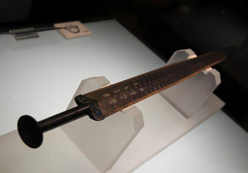 Sword of King Goujian has a length of 55.7 centimeters. It was buried down deep in earth for over 2000 years and still maintained sharp. More than 20 pieces of paper will be instantaneously cut into halves. No wonder it is considered as the Fastest Sword of China.