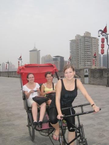 Finally we made a walk to the southern gate of the City Wall. When visiting Xi’an a walk on the wall is a must-do, and we did not want to miss it. On the top of the wall we finally decided to take a rickshaw for half an hour. We were driven into the direction of the west gate and made several stops to take pictures.