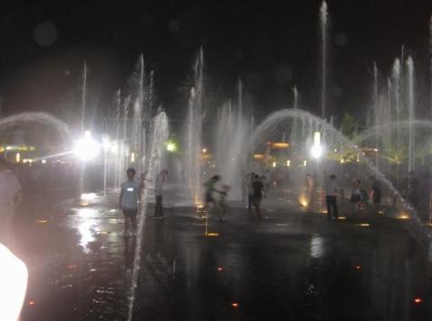 It was half past eight when we came back to the South Gate and we immediately took a taxi to Big Wild Goose Pagoda. There we attended a water and light show which took place at the huge fountains in front of the pagoda. The whole place was crowded by Chinese people and it was difficult to see anything. After some time many people were running though the fountains and enjoying the cooling effect of the water.