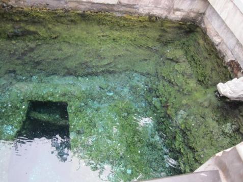 After lunch we paid a visit to Huaqing Hot Springs. They are situated at the northern foot of Mt. Lishan in Lintong County, 30 kilometers (18.6 miles) from Xian City, and are famous for both its dainty spring scenery and the romantic love story of Emperor Xuanzong (685-762) and his concubine Yang Guifei in the Tang Dynasty (618-907). The palace has a history of 3,000 years and the hot springs a history of 6,000 years. We walked through the different bathing houses and saw two of the three springs, where 43degress Celsius warm water flows up from the ground.